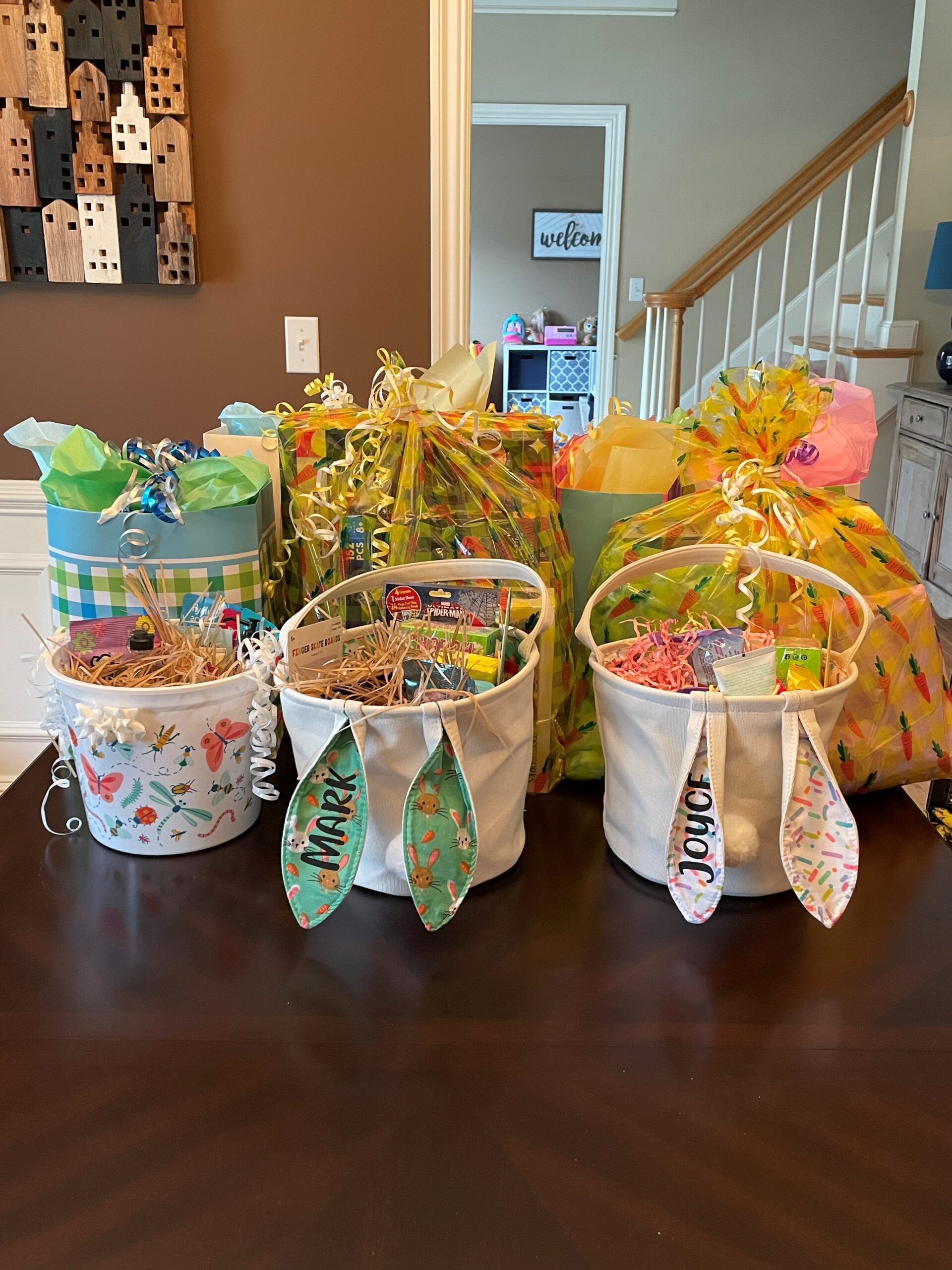 A special thank you to Sheena for helping me put the baskets together! They came out beautifully and I know we made two children very happy waking up on Easter morning!